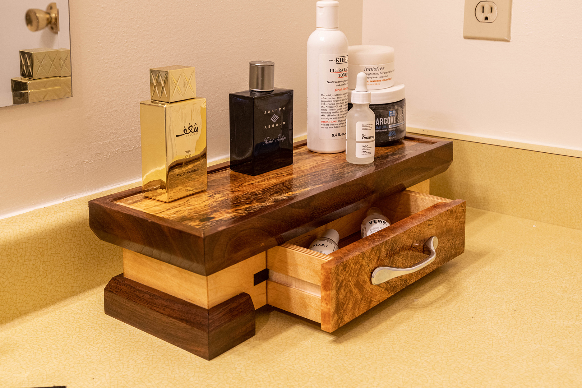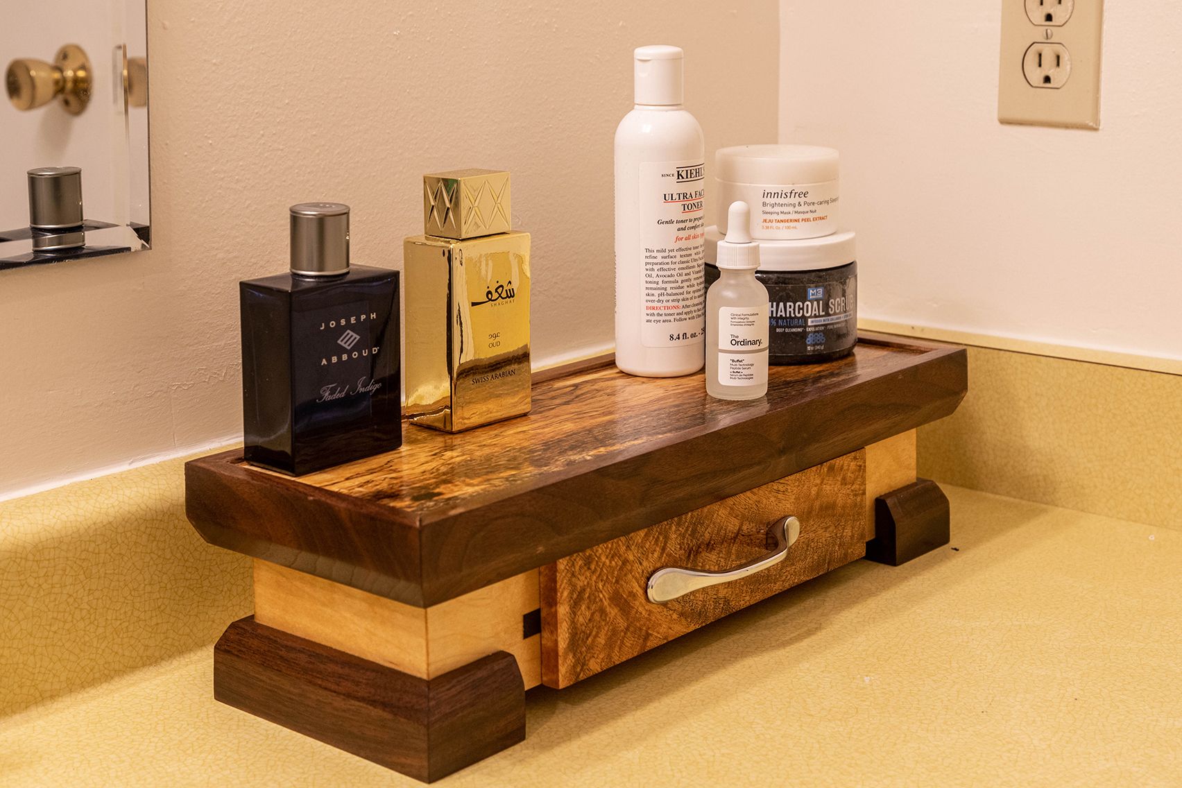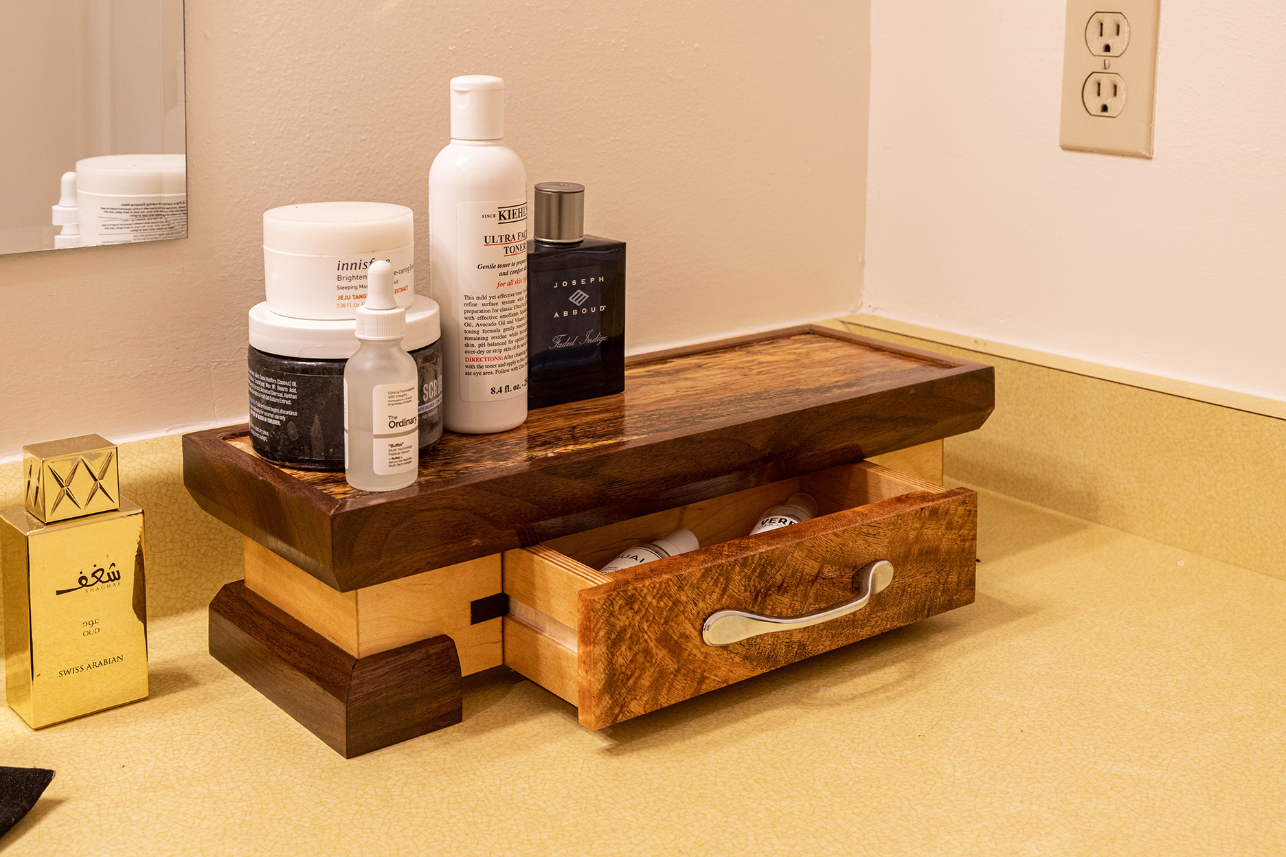 If you follow us on Instagram you’ve probably seen the recent post on my latest prototype — a hygiene product organizer in baltic birch ply, mango, and walnut. If the post piqued your interest and you’d like to see more shots of the project, scroll below for more! A longer description of the design is at the very bottom.