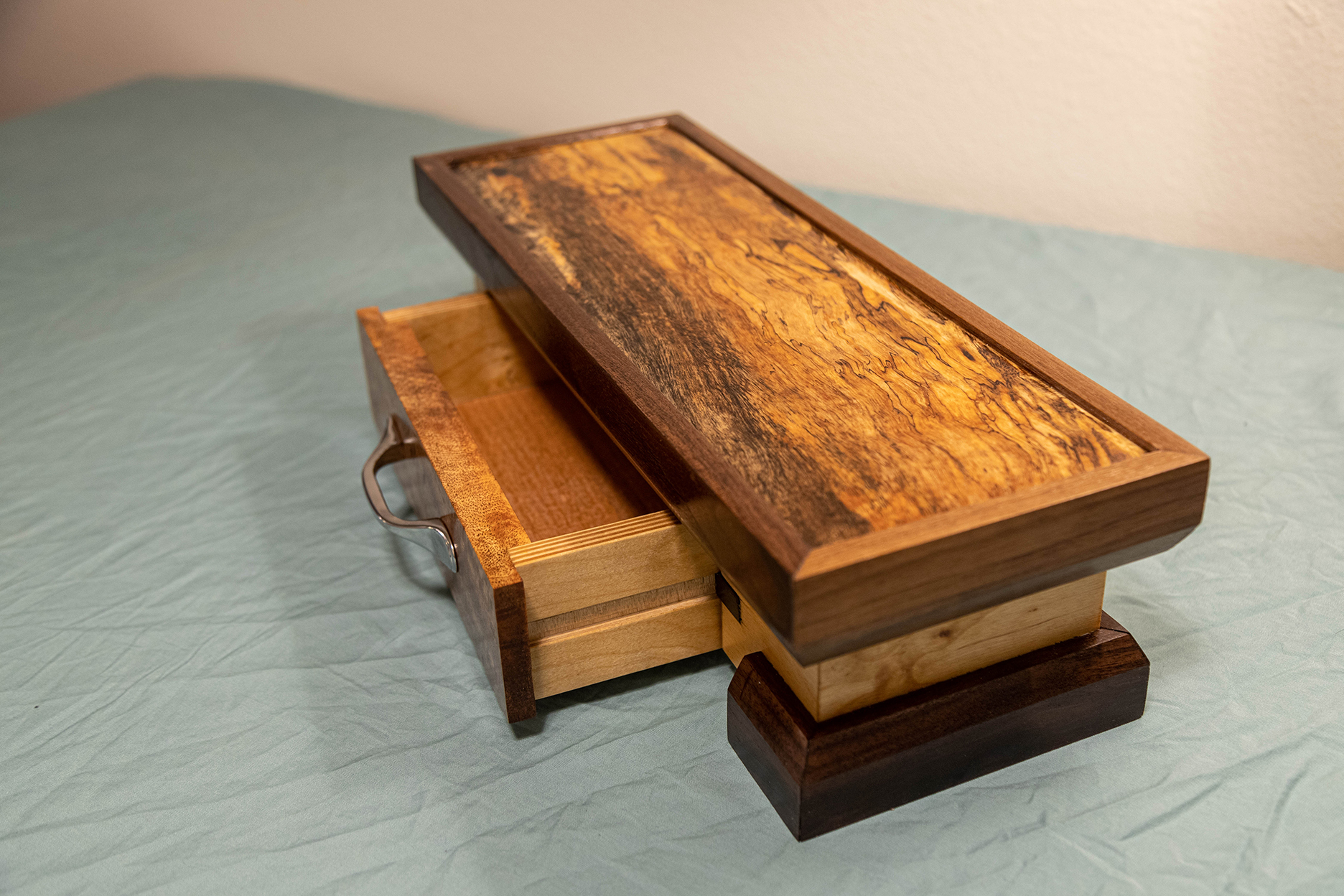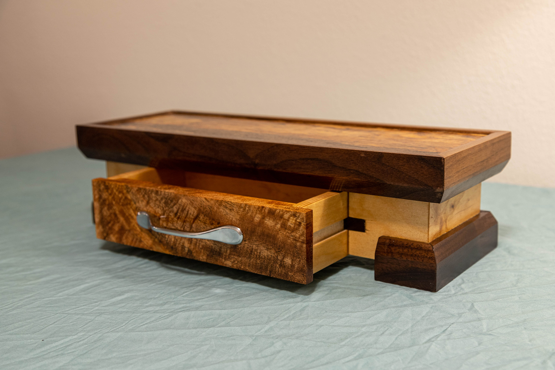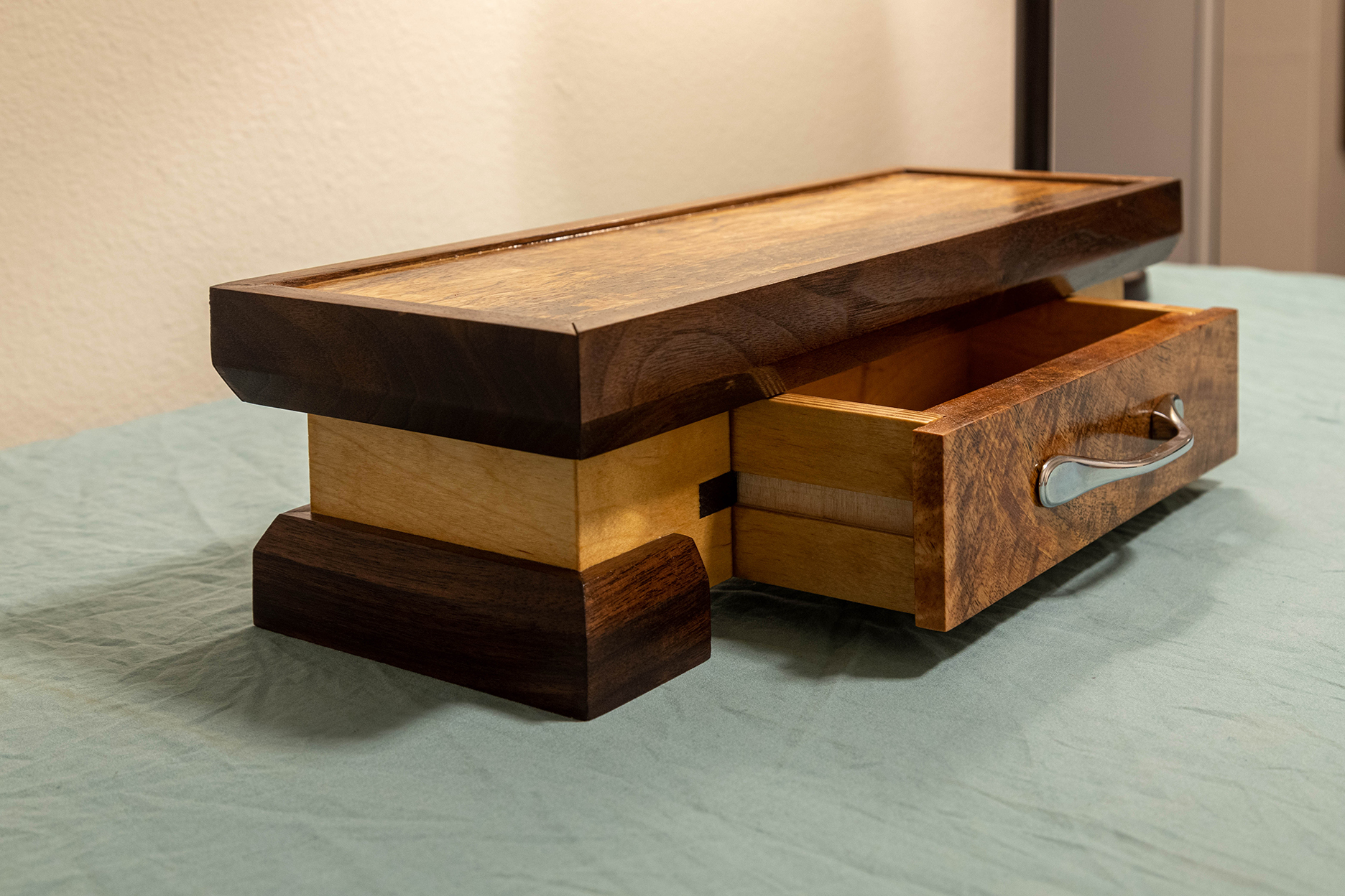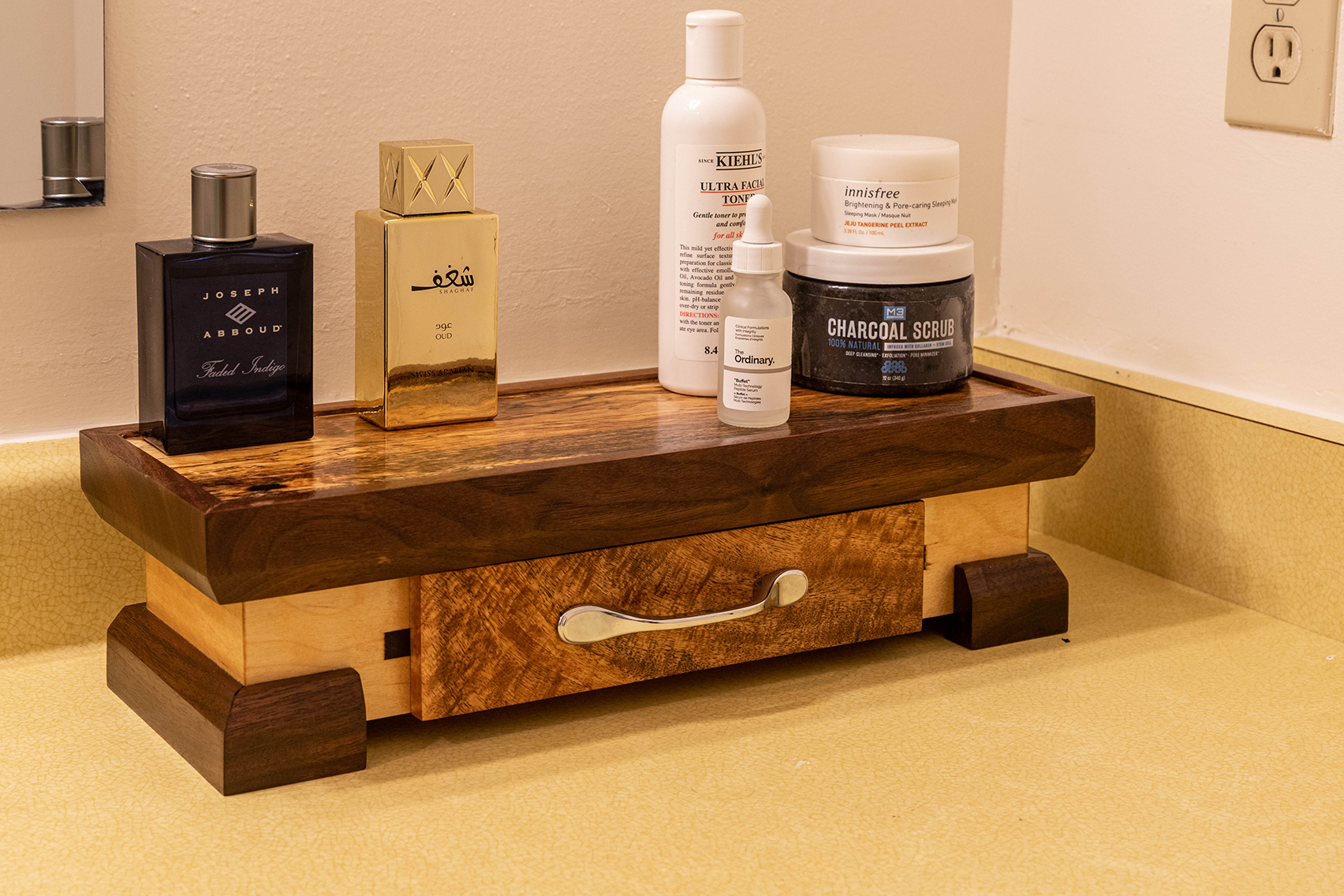 If you follow us on Instagram you’ve probably seen the recent post on my latest prototype — a hygiene product organizer in baltic birch ply, mango, and walnut. If the post piqued your interest and you’d like to see more shots of the project, scroll below for more! A longer description of the design is at the very bottom.